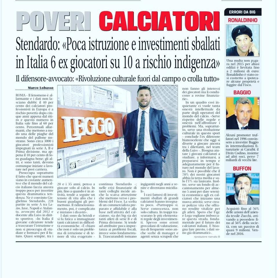 Sei ex calciatori italiani su dieci, a cinque anni dal ritiro, sono a rischio povertà. “Scarsa istruzione e investimenti avventati sono i problemi più grandi”, spiega Guglielmo Stendardo, ex difensore, oggi avvocato. Secondo l’ex giocatore, il rischio di vivere al di sotto della soglia di povertà, a 5 anni dal ritiro, riguarda 4 professionisti su 10. La maggior parte di loro possono solo sognare i 30 milioni di euro netti di ingaggio di Cristiano Ronaldo: si devono accontentare di cifre molto più modeste. “Solo il 10% dei circa 3000 calciatori professionisti italiani guadagna una cifra che può permette di non lavorare dopo il ritiro. Tutti gli altri, e farebbero bene a farlo durante la carriera, devono pensare a un lavoro da fare quando i riflettori dello stadio si spegneranno per sempre”. L’assenza di istruzione “il 70% si ferma alla terza media”, il tenore di vita elevato “il ridimensionamento non è semplice” e, la mancanza di educazione finanziaria “in troppi trascurano le più elementari regole degli investimenti: spesso sono errori grossolani di valutazione, ma anche di manager e agenti senza scrupoli che li conducono a rovine finanziarie. Serve una rivoluzione culturale in questo sport”. Ronaldinho, nel 2015, ha visto lievitare una multa fino a 2 milioni di euro; Roberto Baggio ha rimesso 7 miliardi di lire nel 1996 per una truffa orchestrata da alcuni promoter e, Gigi Buffon, ha perso circa 8 milioni di euro investendo nell’azienda tessile Zucchi.