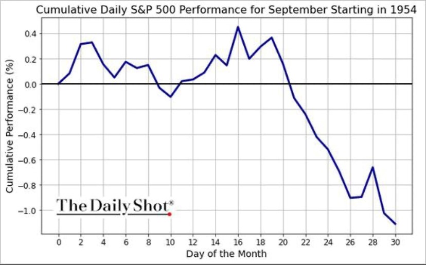 Ecco l’andamento dello S&P500 nel mese di settembre dal 1954 ad oggi